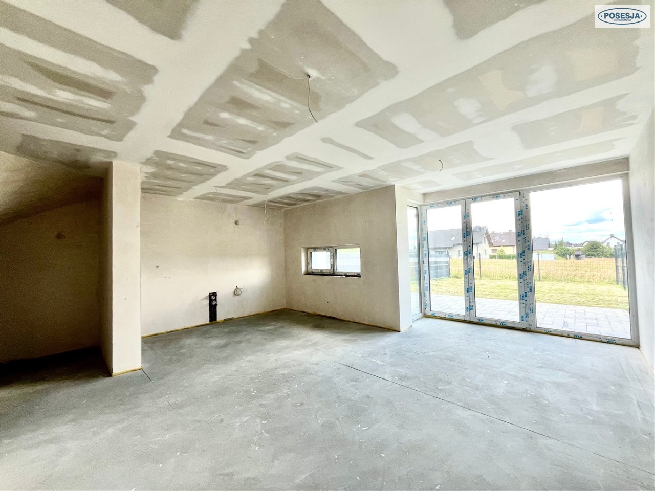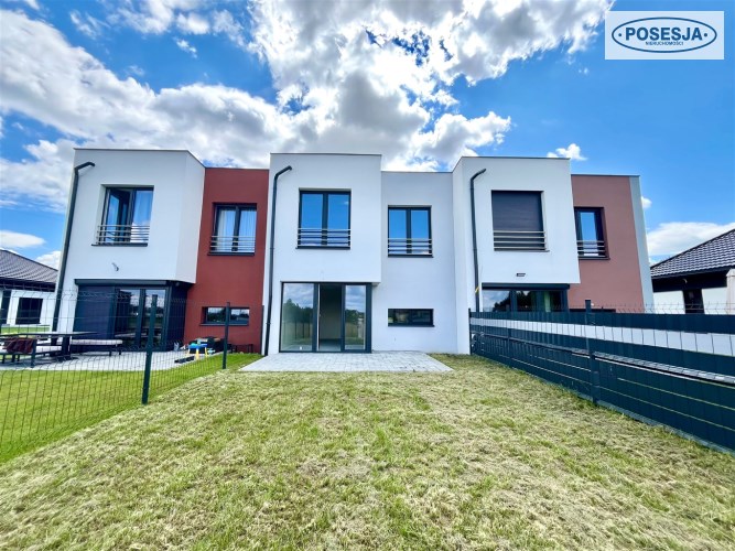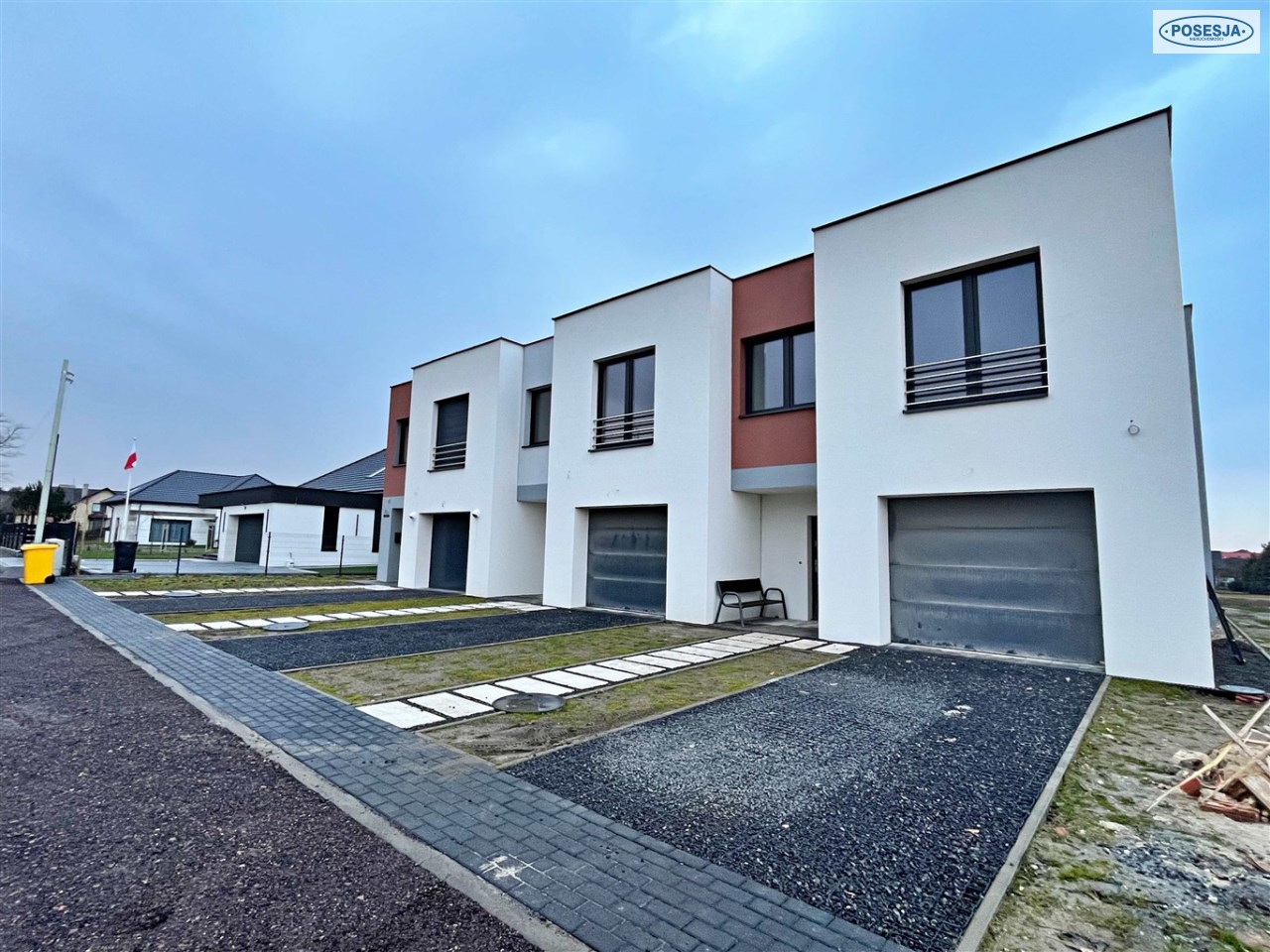Działka utwardzona.Teren ogrodzony częściowo. Podjazd do budynków wybrukowany. Nowoczesna stylistyka, idealny dla rodziny z dziećmi.