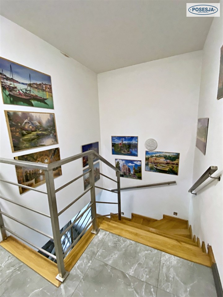 Schody: dębowe z balustradą ze stali nierdzewnej.