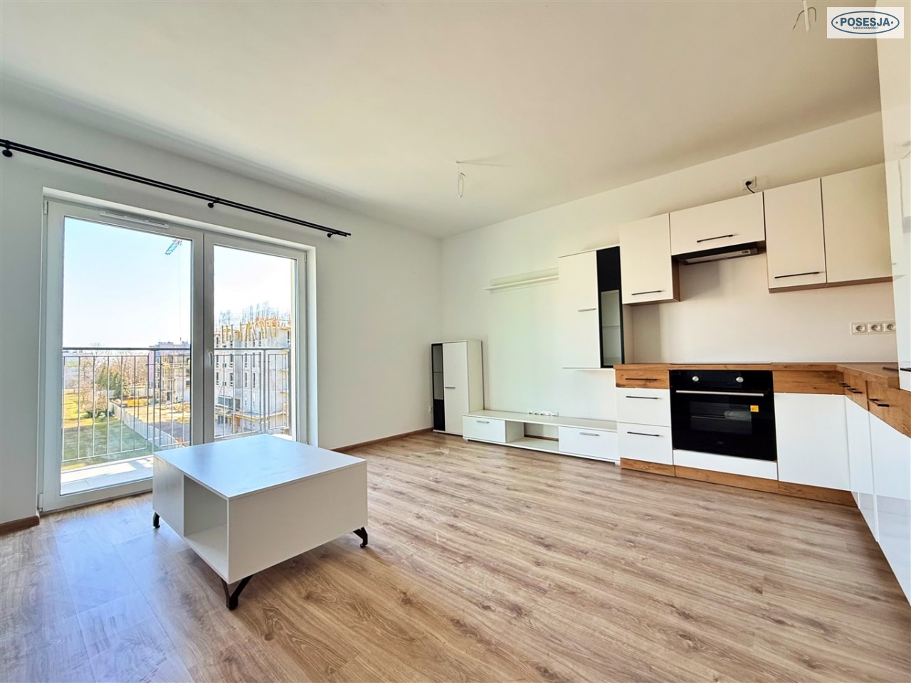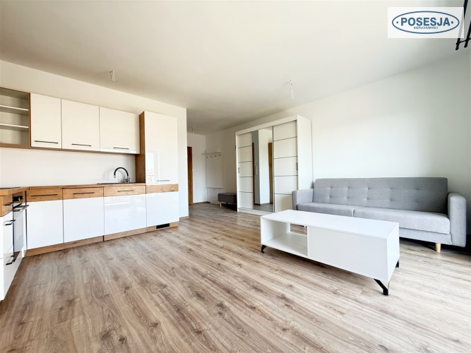 Mieszkanie składa się z przestronnego salonu z aneksem kuchennym i wyjściem na duży balkon, łazienki i przedpokoju.