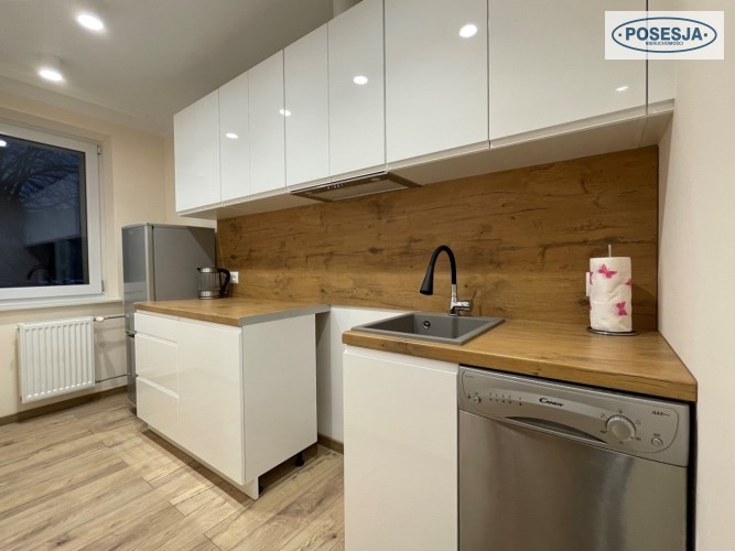 Mieszkanie gotowe do wprowadzenia! Nowe meble kuchenne, sprzęty (lodówka, kuchenka, zmywarka, piekarnik) oraz umeblowany pokój dzienny z telewizorem tworzą przytulne miejsce.